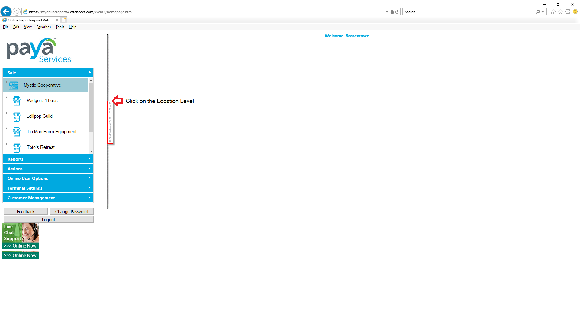 Click on the Location Level [